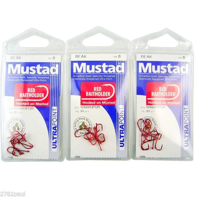 The Mustad 92668NPNRÂ is a classic long baitholder pattern with two bait holding slices along the back that is coloured red to easily hide inside baits.