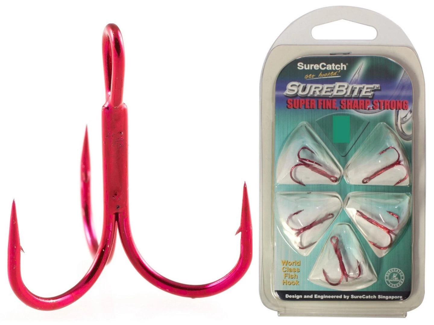 Surecatch treble hooks are designed, engineered and tested to acheive world class standard.